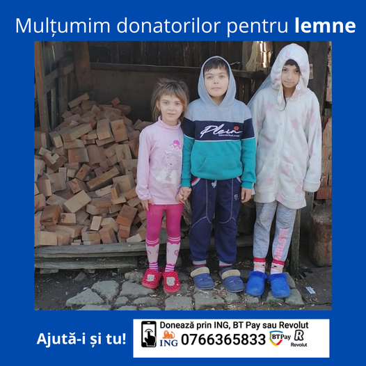 Familia Constantin este o familie nevoiasa care isi duce cu greu traiul. Prin bunavointa donatorilor, au primit lemne de foc pentru iarna.